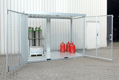 Outdoor storage of gas cylinders, kit form, easy to assemble (assembly instructions included)Attributes Sturdy frame construction, TRGS 510 complia...