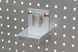 - Sturdy rear panel, perforated, galvanized steel sheet with 10 x 10 mm square holes, straight row pattern, 38 mm spacing allows tool holders to be positioned as required