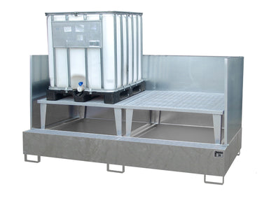 For the storage of 1000 litre IBCsAttributes Construction made of 3 mm steel sheet 100 mm ground leeway Galvanized grid (load capacity 1000 kg/m²) ...