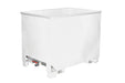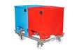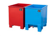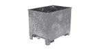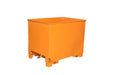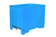 Inexpensive stacking container, discharged using a forklift rotator