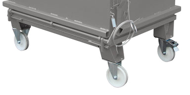 A tilting container with a new innovative lever release mechanismAttributes Sturdy frame with fork sleeves Can be emptied at any height by cable op...
