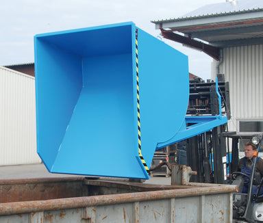 Large volume skip with side pivotAttributes Body wall with all-round reinforced edging Sturdy frame with fork sleeves Can be secured to prevent sli...