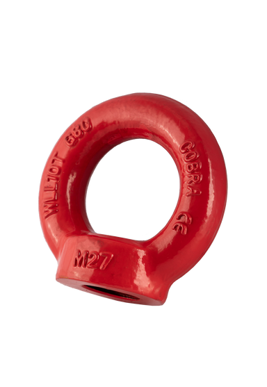 Alloy steel. Red painted finish. Sizes based generally on DIN 582 eyenuts. Minimum breaking load is 4 times the W.L.L. W.L.L. is based upon in lin...