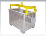 Box pallets with DIN 15155 specifications, are usually moved around with a forklift, but are so sturdy that they can be picked up and transported with a spreader beam grab and an overhead crane hooked up to the top of the box pallet‘s frame.