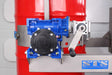This unit uses two manual 13cc hydraulic pumps mounted on the base of the chassis. To lift a drum, operators pump the rear handle back and forth which raises the height of the carriage. The pumps have been designed so that the amount of force required to lift a drum is low.